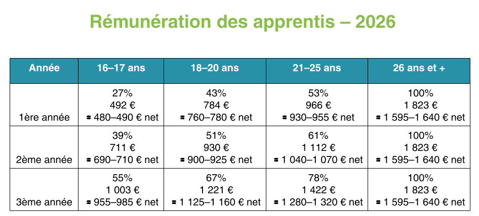 - Il est rémunéré en pourcentage du SMIC selon son âge, sa formation et la convention collective de l’entreprise d’apprentissage